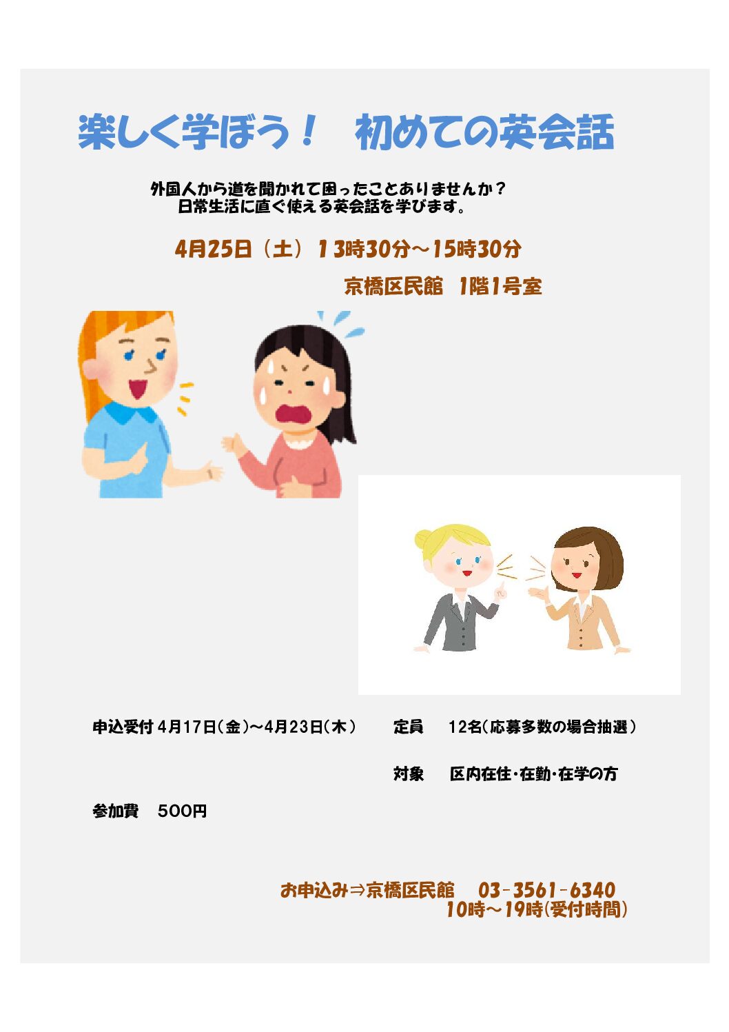 4月25日開催 利用促進事業『楽しく学ぼう初めての英会話』